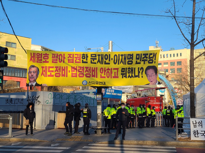 이태원참사 시민대책회의 한 관계자는 “시민들이 추모를 위해 오시다가도 극우단체의 시끄러운 확성기 소리와 이들을 막고 있는 많은 경찰 병력 때문에 발걸음을 돌리는 경우가 있다”며 “근처 반대 현수막도 최근 들어 더 늘어나고 있다”고 말했다.