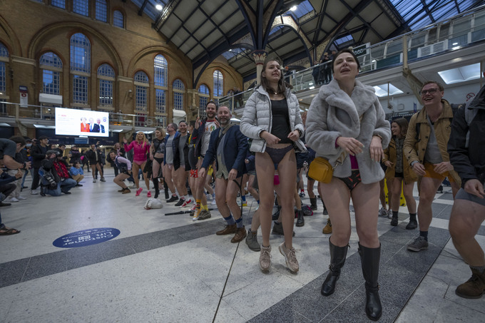 8일(현지시간) 영국 매체 데일리메일은 런던 지하철 ‘엘리자베스 라인’에서 ‘바지 벗고 지하철 타기(No Trousers Tube Ride)’ 행사가 열려 수백명의 승객이 하의 속옷 차림으로 이동했다고 보도했다.