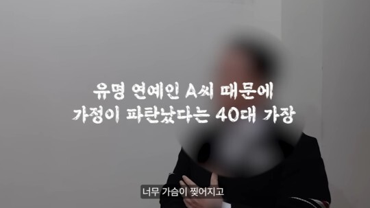 남자 아이돌 출신 유명 연예인이 불륜을 저질러 한 가정이 파탄 났다는 40대 남성의 폭로가 나왔다.
