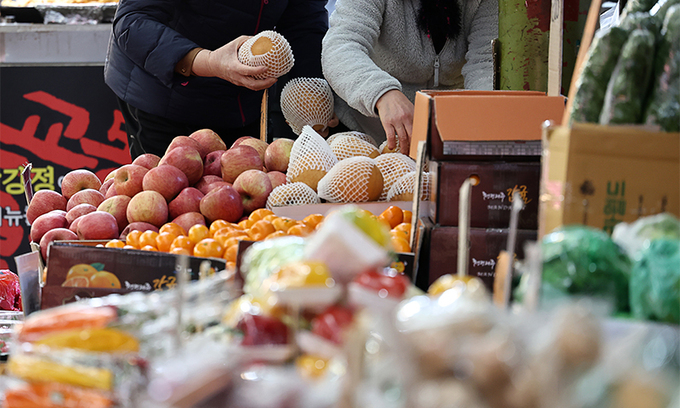 지난 12일 서울 중구 롯데마트 서울역점을 찾은 시민이 장을 보고 있다. 연합뉴스