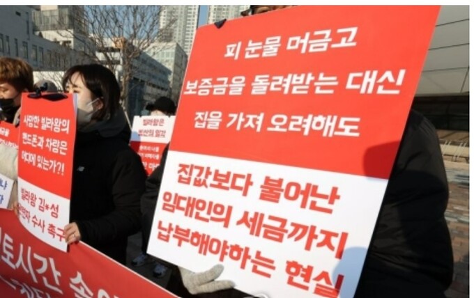 김씨 사건 피해자 강모 씨는 "보증보험에 가입하지 않아 법을 어겼음에도 김씨는 개인 임대사업자 지위로 계속해서 주택을 매입하고 임대차계약 행위를 지속할 수 있었다"며 "나라에서 왜 어떠한 제재도 하지 않고 놔둔 것인지 답변을 듣고 싶다"고 말했다.