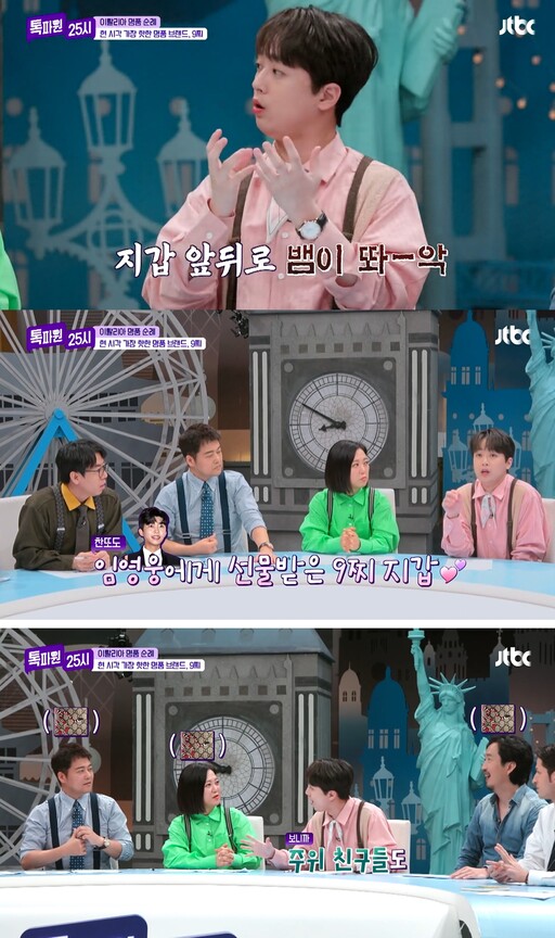 G사의 디자인에 관해 이야기를 하던 중 이찬원은 임영웅에게 받은 지갑을 언급했다.
