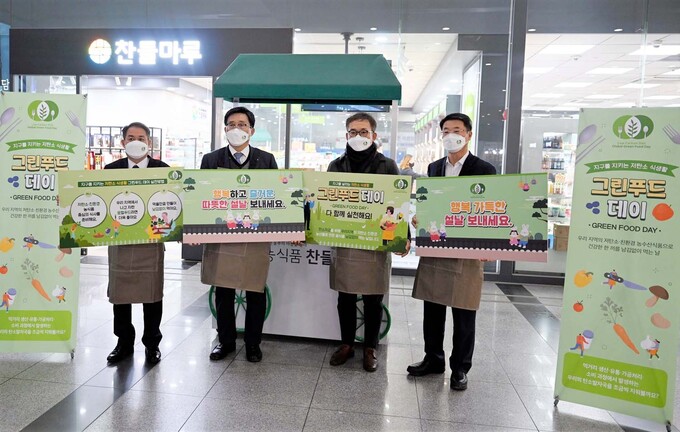 한국농수산식품유통공사(사장 김춘진)는 민족 고유의 설 명절을 맞아 19일 용산역에서 코레일유통(대표 이광진), 농민신문사(사장 하승봉), 한국경영혁신중소기업협회(회장 석용찬)와 함께 귀성객을 대상으로 먹거리 분야 탄소중립을 위한 ‘저탄소 식생활 캠페인’을 홍보했다.