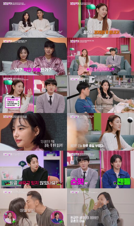 채널A 동거 관찰 러브스토리 '결혼 말고 동거'가 1~2회 첫 방송을 선보였다. 한혜진·이용진·아이키·이수혁 4MC는 "위험하고 아찔하다"며 각기 다른 사연을 가진 세 쌍의 동거 커플을 지켜봤다.