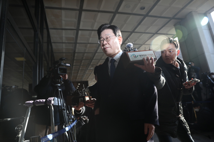 이 대표는 또 “두 사업에 대한 입장은 검찰에 제출할 진술서에 다 담았다. 곧 여러분께도 공개하겠다”면서 “검찰 주장이 얼마나 허황된지, 객관적 진실이 무엇인지 충분히 알 수 있을 것”이라고 덧붙였다. 기자들 질문에는 답하지 않고 청사로 들어섰다.