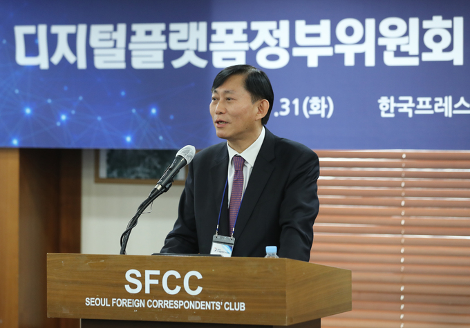대통령 직속 디지털플랫폼정부위원회 고진 위원장이 31일 서울 중구 프레스센터에서 기자간담회를 갖고 ‘디지털플랫폼 정부’ 추진 구상을 밝혔다. 디지털플랫폼 정부는 윤석열정부의 공약이다.