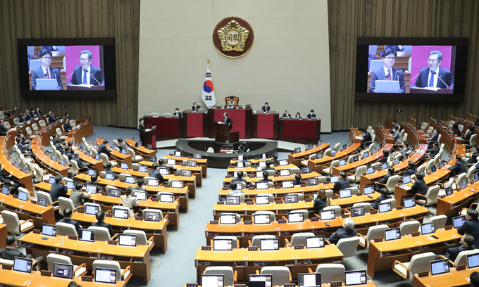국회는 6일 서울 여의도 국회 본관 본회의실에서 정치·외교·통일·안보 분야 대정부 질문을 진행했다. 이날 대정부 질문에는 한덕수 총리와 한동훈 법무부 장관, 이상민 행정안전부 장관, 이종섭 국방부 장관 등이 출석했다.