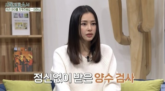 이하늬는 아이가 태아였을 당시 장애 가능성이 높아 각종 검사를 받아야 했던 당시를 떠올리며 눈물을 보였다. 이하늬는 “임신 18주에 대학병원에서 유전자 추적검사를 해봤으면 좋겠다고 연락이 왔다. 노산이라 더 많이 (검사를) 했는데 (장애)가능성이 높다고 나왔다”며 “별생각 없이 갔는데 (선생님이) 산부인과에 전화해서 ‘양수 검사해 주시고 배양해서 만약에 그러면 낙태 수술해야 할 수도 있다’고 하면서 끊으시더라. 그 말에 완전히 무너졌다”고 말했다.