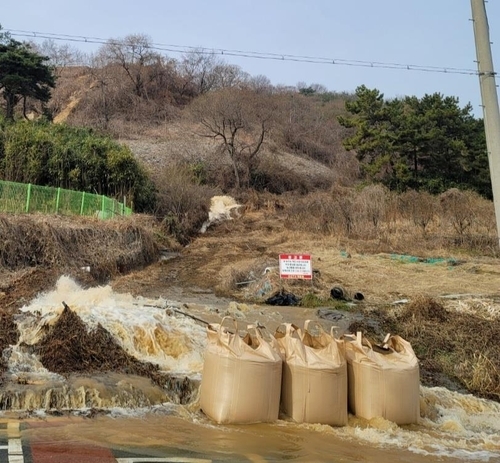 광주 덕남정수장 밸브 고장으로 식수로 공급될 귀한 식수가 홍수가 난 것처럼 주변 도로로 넘쳐 흘러내리고 있다. 연합뉴스