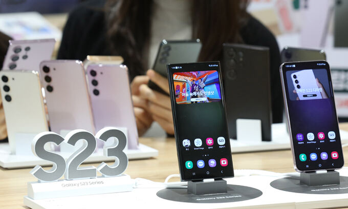 지난 7일 서울 종로구 KT 광화문역점에 갤럭시 S23 시리즈가 진열돼 있다. 뉴시스