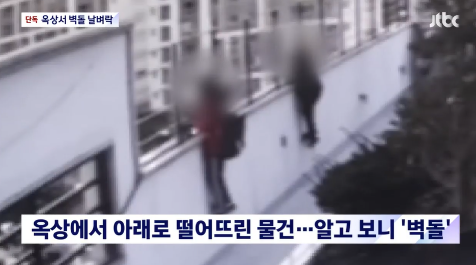 지난 16일 JTBC 보도에 따르면 지난해 11월 경기 남양주시의 한 5층 건물 옥상에서 초등학생 2명이 벽돌을 아래로 던지는 사건이 발생했다.
