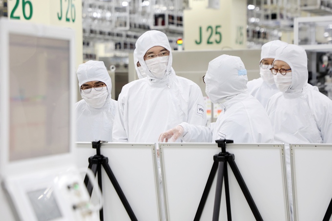 이재용 삼성전자 회장이 17일 삼성전자 천안캠퍼스를 찾아 패키지 라인을 둘러보고 사업전략을 점검했다. 삼성전자 제공