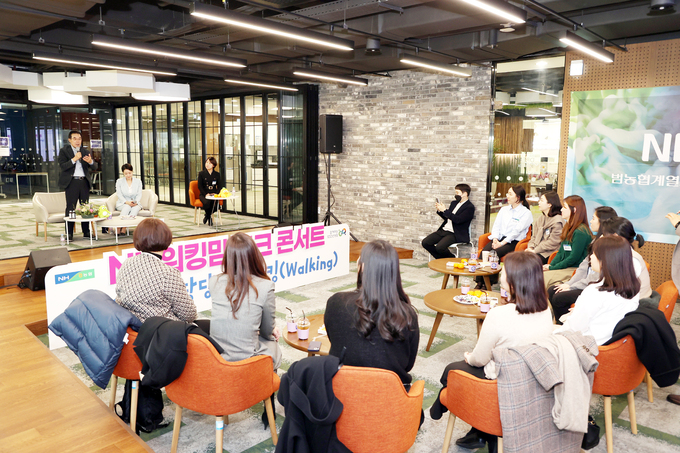 이어서 개최된「NH 워킹맘 당당하게 워킹(Walking)」간담회에서 이성희 회장은 계열사의 여성 경영진 3명을 포함한 워킹맘 임직원 30여명과 함께 ‘가정과 회사의 양립’을 주제로 이들의 최근 관심사와 직장 내 고민, 코로나 19 이후 직장과 가정생활의 변화 등에 관한 격식 없는 대화를 나눴다.