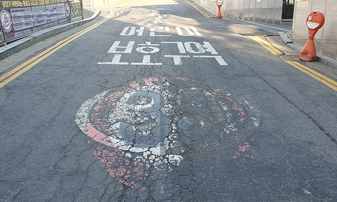 지난해 개정된 도로교통법 시행규칙에 따르면 (30) 노면표시 테두리는 적색, 원 안의 바탕과 글자는 각각 흰색·검은색이어야 한다. 글자와 테두리가 모두 흰색인 노면표시가 종종 눈에 띄었는데, 관련 규정에 어긋난 셈이다.