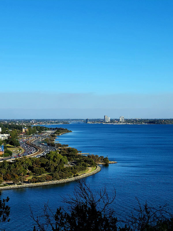 2015년 영국 이코노미스트가 선정한 ‘세계에서 제일 살고 싶은 도시’ 8위로 퍼스가 선정된 이유를 잘 알겠다. 무엇보다 스완강은 너무 광활해 바다라고 해도 모두 믿겠다. 도심과 자연이 공존하는 환상적인 뷰를 만나러 퍼스 사람들은 물론 여행자들은 반드시 이곳을 찾는다. 마침 날이 아주 맑아 사우스 퍼스 방면의 스완강으로 합류되는 캐닝 강(Cnning River)까지 또렷하다.  전쟁기념관 옆 프래저 애비뉴(Fraser Avenue) 남쪽에 유명한 카르타 가르업(Kaarta Gar-up) 전망대와 101계단을 오르는 나선형 DNA 타워 있지만 전쟁기념관에서 보는 뷰가 으뜸이다.