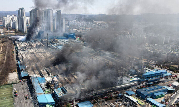 한국타이어 대전공장에서 발생한 불이 13시간 만에 잡혔다. 대전소방본부는 13일 오전 11시20분쯤 한국타이어 대전공장 정문 앞에서 브리핑을 열고 “전날 오후 10시9분쯤 난 화재 주불을 이날 오전 11시쯤 잡았다”고 밝혔다. 이 불로 북쪽 2공장이 전소되고 타이어 21만개가 탄 것으로 잠정 파악됐다.