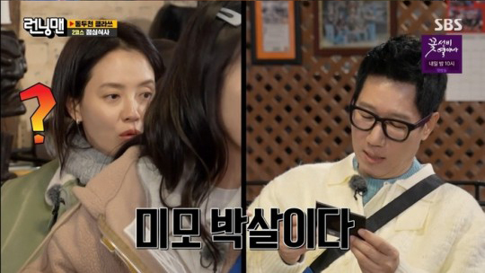 ‘런닝맨’ 지석진이 송지효의 미모에 말실수를 했다.