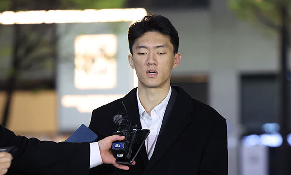 발언 후 곧장 호텔 로비로 들어선 전씨는 동행인이 체크인 절차를 진행하는 동안 외부에 있는 취재진을 향해 반복적으로 90도 인사를 하기도 했다.