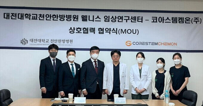 대전대 천안한방병원 웰니스스파 임상시험센터와 ㈜코아스템켐온은 6일 천안한방병원에서 업무교류 및 협력을 위한 협약식(MOU)을 체결했다.