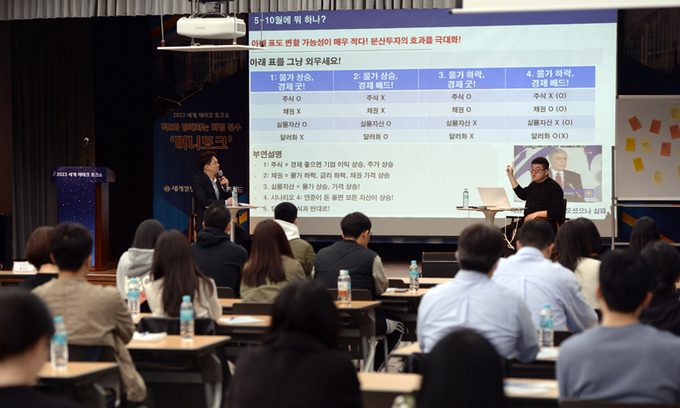 12일 서울 중구 명동 은행회관 국제회의실에서 열린 ‘2023 세계 재테크 토크쇼’에 강연자로 나선 주식 전문가 강환국 작가와 부동산 경매 전문가 이현정 즐거운컴퍼니 대표는 금리 인상과 고물가에 따른 경기 악화에도 정량적이고 객관적인 전략을 사용하면 수익을 낼 수 있다고 자신했다. 한 치 앞의 미래도 예측할 수 없는 상황에서 자산 배분 철학을 가지고 포트폴리오를 구성해 운영하면 어떤 상황이 오더라도 어느 정도 대응이 가능하다는 것이다. 특히 올해는 경기 회복 낙관론이 나오는 만큼 투자가 중요한 해라고 강조했다.