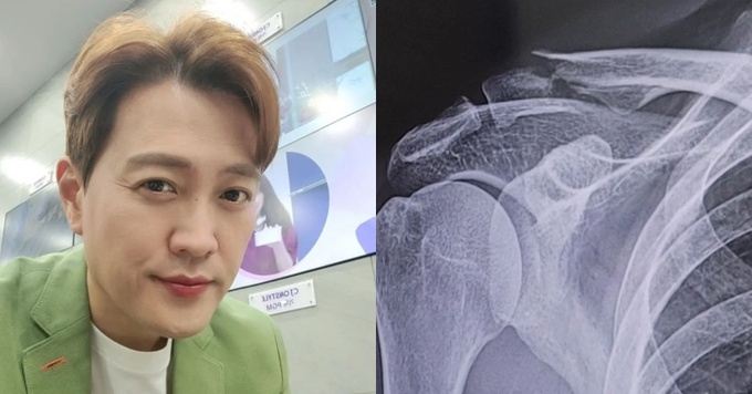 게시물에는 부러진 쇄골 뼈 엑스레이와 8자 붕대를 착용한 문천식의 뒷모습이 담겼다.