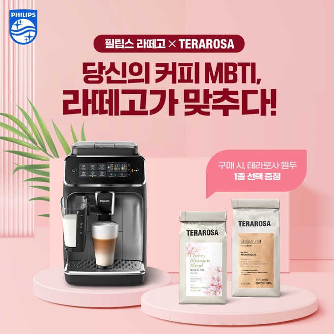 필립스생활가전코리아㈜(대표: 신봉규)가 4월 한 달간 필립스생활가전 온라인 공식 판매처에서 커피머신을 구매한 고객을 대상으로 나의 ‘커피 MBTI’ 찾기 프로모션을 진행한다. ‘라떼고 5400, 3200, 2200시리즈’, '라떼클래식 3200, 2200시리즈’, ‘1200 시리즈’ 구매 페이지 내 네이버폼 링크를 통해 구매 인증과 커피 MBTI 테스트를 완료하면 된다. 테스트 결과에 따라 취향에 맞는 테라로사 원두 1봉과 필립스 커피머신으로 제조할 수 있는 16가지 ‘커피 MBTI 레시피북’을 추첨을 통해 500명에게 증정한다.