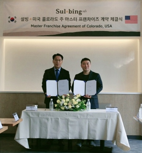 코리안디저트카페 설빙은 오늘(13일) 서울 송파구 설빙 석촌호수동호점에서 미국 콜로라도 1호점 설립을 위한 마스터 프랜차이즈 계약식을 가졌다.