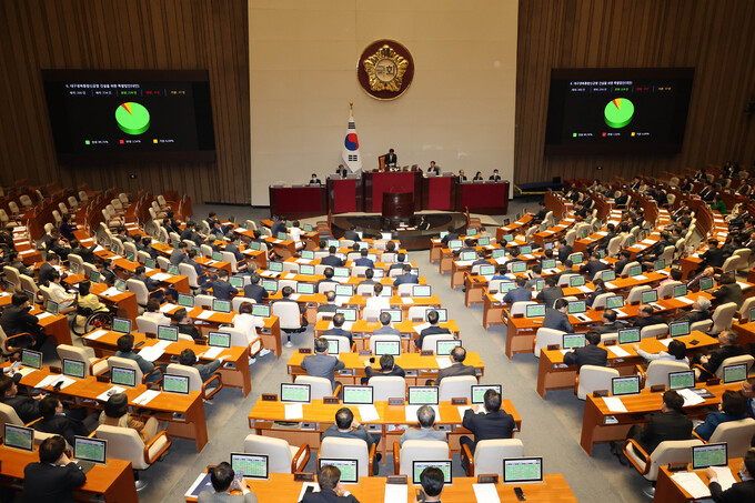 지난 13일 국회 본회의에서 대구경북통합신공항 건설을 위한 특별법안이 의결되고 있다. 연합뉴스