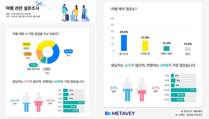 10~60대 남녀 600명 중 38%는 ‘숙소가 가장 중요’…그 다음으로 관광지, 식사, 체험활동 등