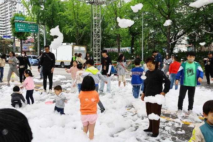 연휴 마지막날인 7일 서울 노원구 노해로 일대에서 노원구 어린이날축제 '함께해요 노원 네버랜드' 행사가 열리고 있다. 이날 행사는 지역 어린이들의 장기 자랑과 '핑크퐁과 튼튼쌤의 댄스파티', '캐리와 친구들', '아너브레이커스'의 비보잉 공연 무대가 펼쳐졌고 잔디마당과 놀이마당에도 각각 거리무대를 설치해 인형극, 거리극, 마술공연 등 볼거리를 제공했다.