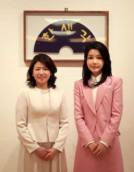 김건희 여사, 유코 여사에 “히로시마 원폭 등 희생된 이들 아픔 위로해”