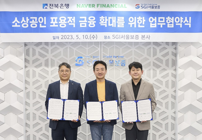 네이버파이낸셜, SGI서울보증·전북은행과 소상공인 위한 상생금융 맞손