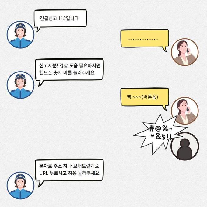 방법은 112에 전화한 뒤 경찰 안내에 따라 숫자 버튼을 두 번 누르면 된다. 어떤 숫자든 상관없다.