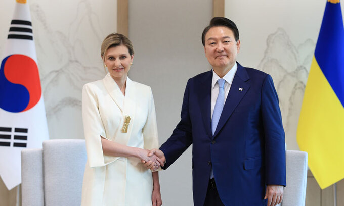 앞서 젤렌스카 여사는 연합뉴스와 서면 인터뷰에서 "(윤 대통령 부부를) 만난다면 한국의 우크라이나 지지에 대해 감사를 표하고 싶다"고 말했다.