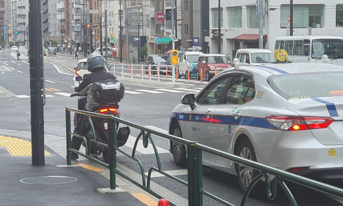 지난 15일 일본 도쿄 신주쿠(新宿)구 한 왕복 6차선 도로와 인도를 1시간 정도 지켜보는 동안 오토바이 무법자는 없었다. 비가 꽤 내리고 있어 우의 차림의 운전자들이 평소보다 천천히 오토바이를 모는 것으로 보였다.