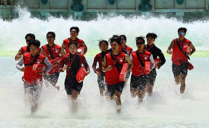 이 날 교육은 야외 파도풀 개장을 앞두고 전문 라이프가드들의 수상 인명구조 모의훈련을 비롯해 파도 속 구조수영과 심폐소생술 실습등 다양한 내용으로 진행됐다.