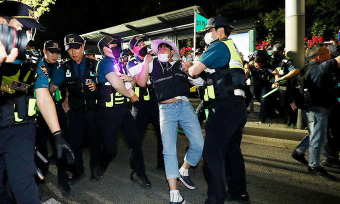 25일 금속노조와 공동투쟁 등 200여명은 서울 용산구 대통령 집무실 앞에서 비정규직 임금 인상, 윤석열정부 퇴진 등을 요구하는 집회를 열었다. 이 가운데 40여명은 대법원 앞 서초대로로 이동해 농성을 이어갔다. 경찰은 지난 16~17일 민주노총 건설노조의 1박2일 노숙 집회 이후 이같은 형식의 야간 문화제에 대해서 허용하지 않겠다는 입장을 밝힌 바 있다. 경찰이 이날 집회 참가자 3명을 체포하고, 해산을 요구한 것도 이같은 강경 입장의 연장선이다.