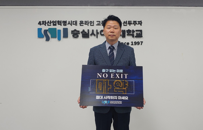 숭실사이버대학교(총장 한헌수) 소방방재학과 이창우 교수가 마약중독의 위험성과 경각심 고취를 목적으로 경찰청이 관계부처와 함께 추진 중인 마약 예방 릴레이 켐페인 ‘노 엑시트(NO EXIT)’에 참여했다고 31일 밝혔다.