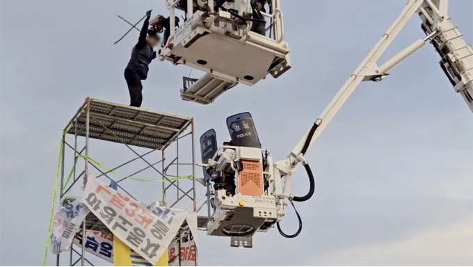 이들은 지난달 29일 광양제철소 복지센터 앞 도로에 7m 높이의 망루를 설치하고 ‘포스코 하청업체 탄압 중단’을 요구하는 농성을 벌였다.