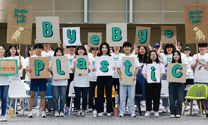 김 여사는 “환경 보호를 위해서는 거대 담론보다는 개개인의 실천이 중요하다”며 “간결하고 쉬운 메시지와 좋은 디자인으로 국민 마음에 녹아들어야 한다. 바이바이 플라스틱 캠페인이 누구나 일상에서 참여할 수 있는 새로운 문화로 자리 잡기 바란다”고 말했다.
