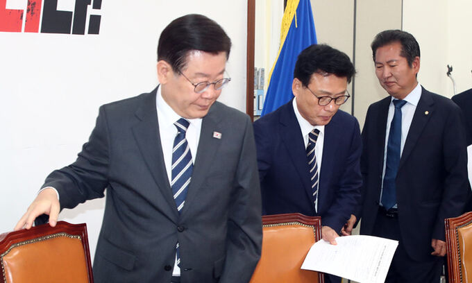 민주당의 혁신 논의는 비명계로 분류되는 박광온 원내대표가 선출된 이후 점화됐다는 게 일반적인 평가다. 박 원내대표는 원내대표 선거에서 쇄신 의원총회 개최를 약속하고 실제 의총을 열어 새 혁신기구 구성의 뜻을 모아 냈다. 이 대표와 박 원내대표 간 당 혁신을 둘러싼 샅바싸움이 이어지고 있는 와중에 친명색이 짙은 이 이사장이 낙마하면서 박 원내대표에게 힘이 실릴 것이라는 전망이 나오는 것이다. 한 초선 의원은 “이 이사장 논란으로 이 대표에 대해 신뢰가 사라질 수밖에 없지 않겠냐”며 “어찌 당의 운명을 맡길 수 있겠냐는 불만이 비주류에서부터 앞으로 계속 나올 것 같다”고 말했다.
