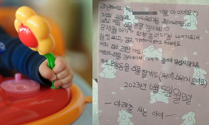 아이는 “선물 정말 감사해요. 8개월이면 아기가 한창 걸어 다닐 때이니 실컷 뛰고, 걷고, 기어 다니라고 해주세요. 우리 집은 괜찮아요”라고 전했다.