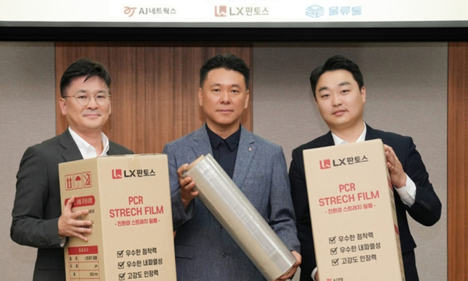 LX판토스는 AJ네트웍스, 물류통과 ‘친환경 부자재 공급 업무협약’을 체결해 친환경 PCR(Post-Consumer-Recycled) 원료의 재생 스트레치 필름을 공급받기로 했다고 설명했다.