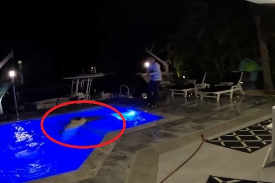 현장에 출동한 센터 직원 2명은 길이 10피트(약 3m) 가량의 악어가 이 집 수영장에 들어가있는 모습을 발견했다.