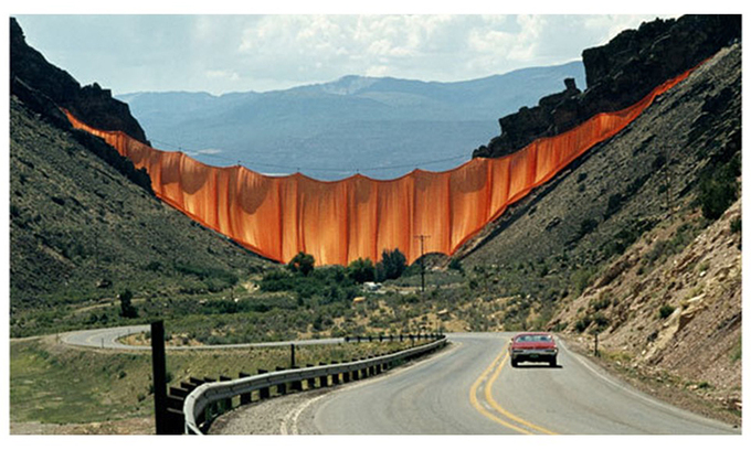 크리스토 자바체프와 그의 부인 잔 클로드는 공공장소나 자연 공간을 거대한 크기로 포장하는 작업을 주로 했다. 퐁네프다리를 천으로 감싸기도 했고, 플로리다의 작은 섬들 주변을 분홍색 천으로 두르기도 했다. 이번에는 콜로라도의 한 계곡에 천으로 커튼을 친 작품을 선보였다. 제목은 ‘밸리 커튼’. 1970년대에 유행한 대지미술 작품이다. 미술작품을 삶의 현장이나 자연 속에 설치해서 환경과 작품의 관계에서 의미를 읽어내도록 하는 양식이다.