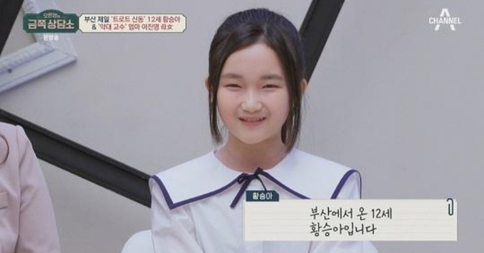 황승아는 지난 2020년 9세라는 어린 나이에 ‘미스트롯2’에 출연해 남다른 노래 실력으로 대중에게 눈도장을 찍은 바 있다.