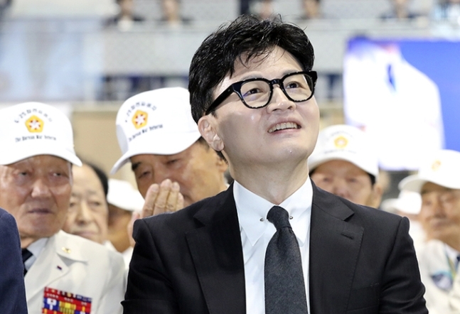 한동훈 법무부 장관이 지난 25일 오전 서울 중구 장충체육관에서 열린 6·25전쟁 제73주년 기념식에 참석해 있다. 뉴시스