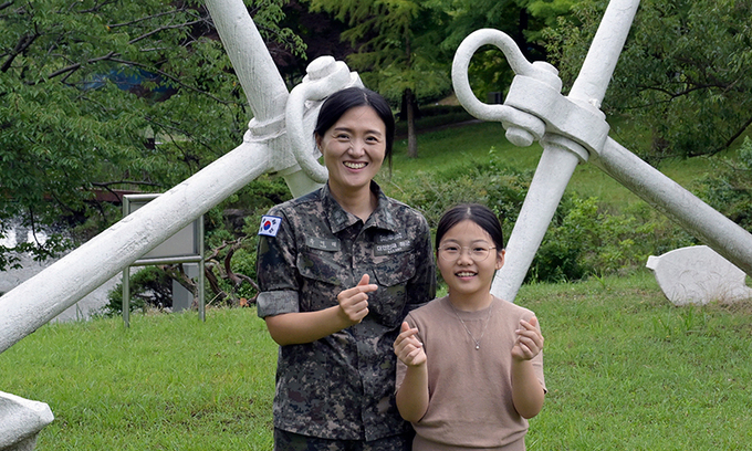 유에리 해군 소령(왼쪽)과 딸 장유정양. 해군 제공