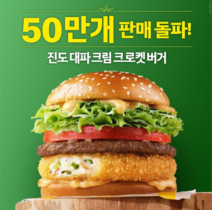 맥도날드는 신메뉴 ‘진도 대파 크림 크로켓 버거’가 출시 1주일 만에 50만개 이상 판매됐다고 14일 밝혔다.