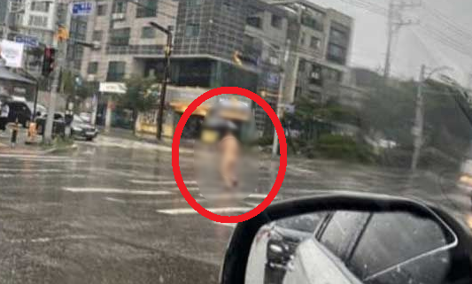 비 오는 날 신발과 우산은 챙기고서 정작 실오라기 하나 걸치지 않은 채 무단 횡단을 하고 있는 이 남성에 대해 누리꾼들은 “뭔 상황이었던 걸까요”, “도박하다 알 거지가 된 건가?” 등 어찌된 영문인지 궁금증을 나타냈다.